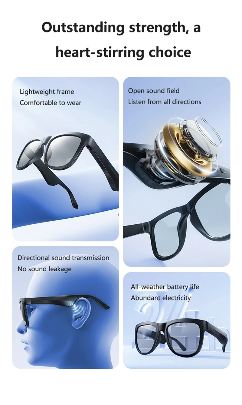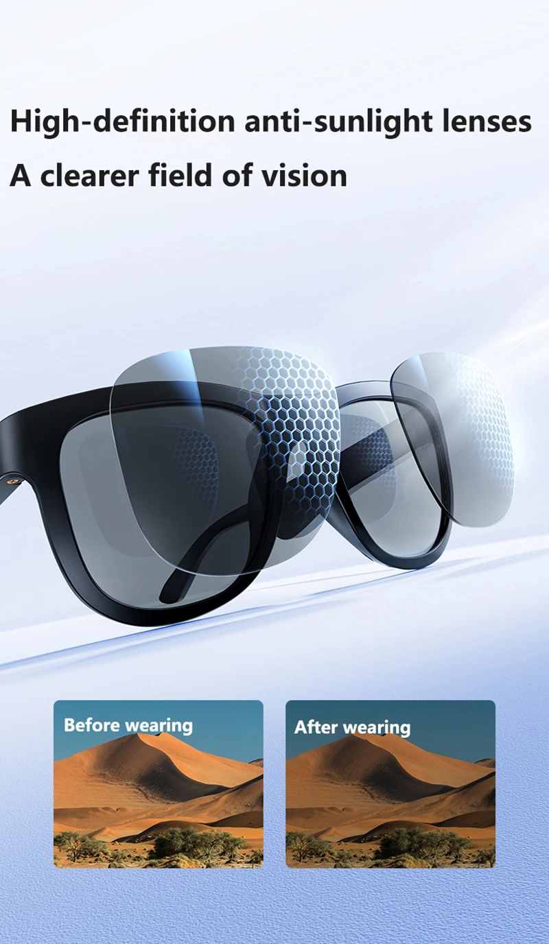 AI Smart Glasses Multifunctional Bluetooth Call Voice Assistant Music Player Translate 2026 HD